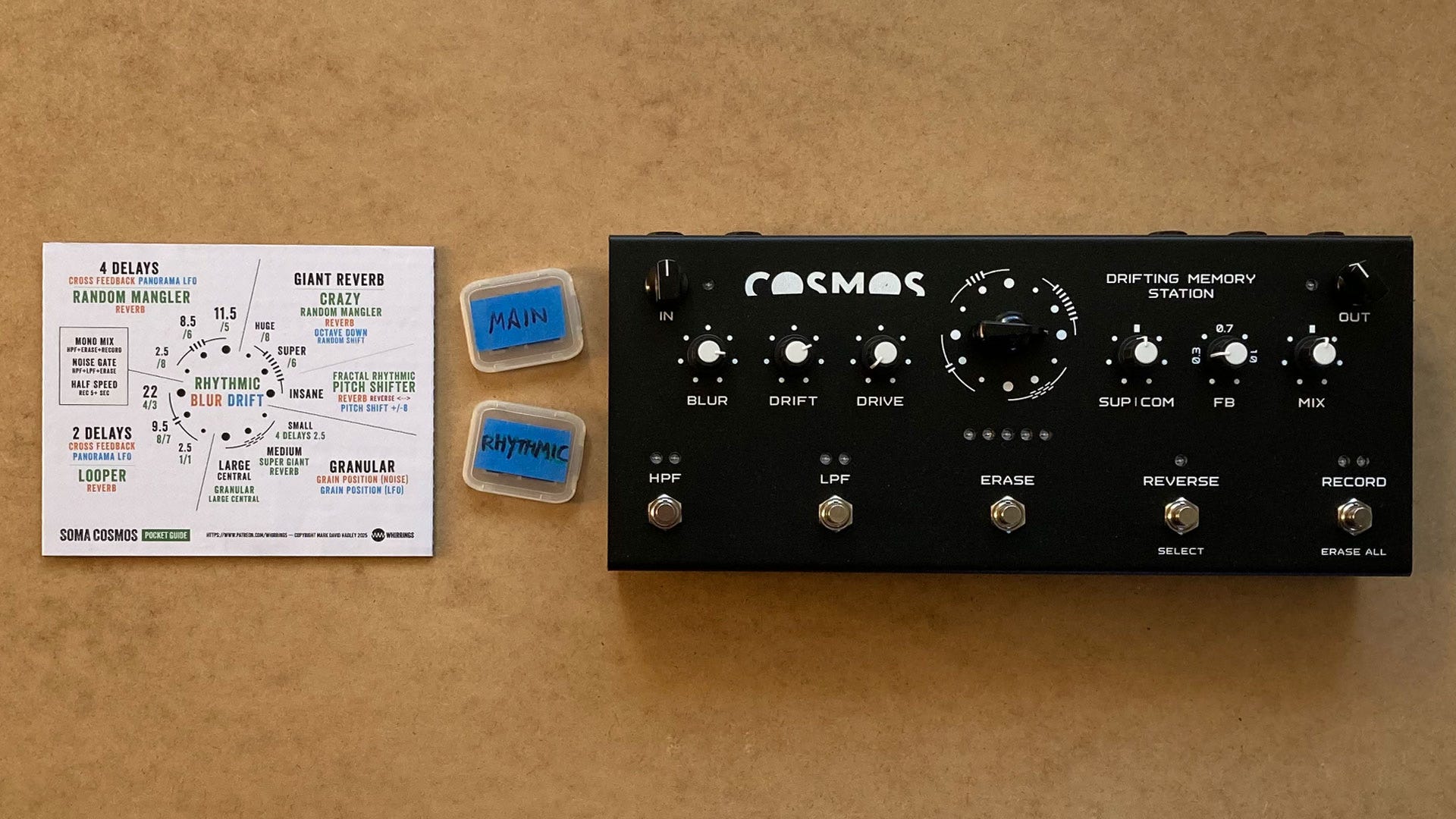So that’s why I designed the SOMA COSMOS Pocket Guide which includes all the functionality of the two main firmwares of the pedal in a handy little printout.